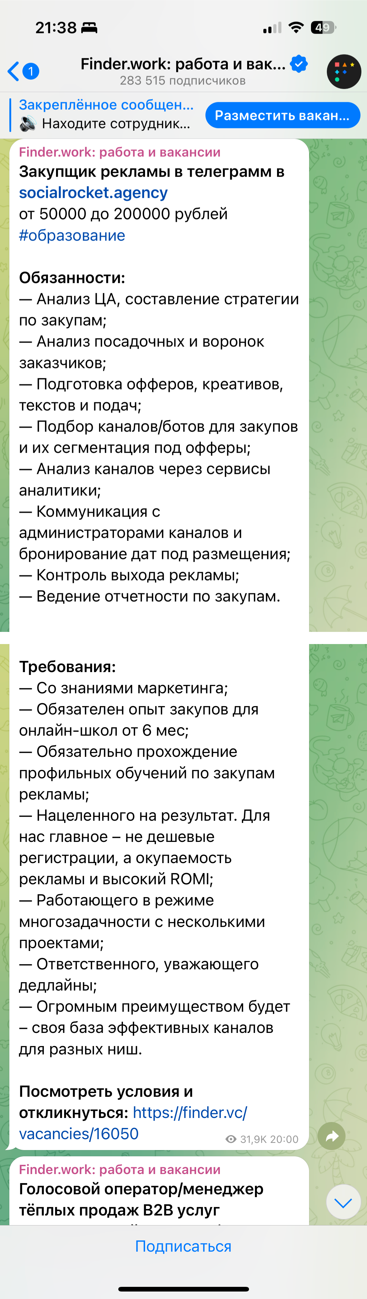 Не было опыта в телеграм