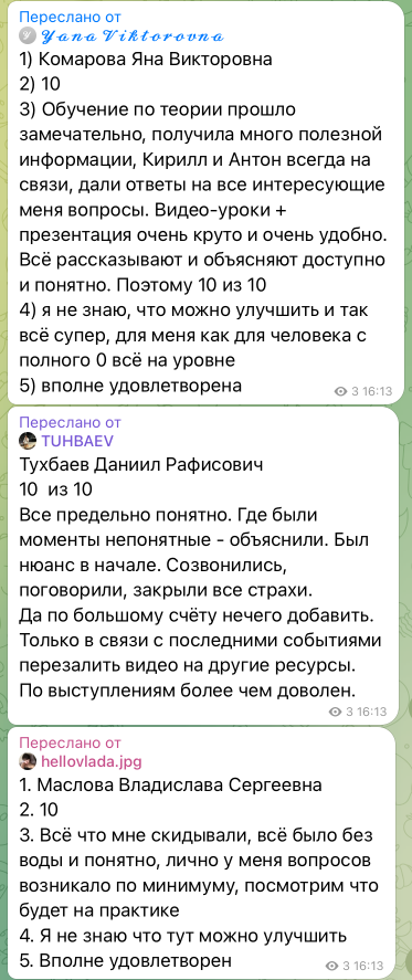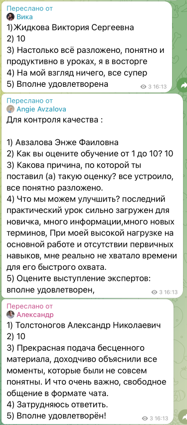 Все ученики дают развернутую оценку обучения, и вот что они пишут