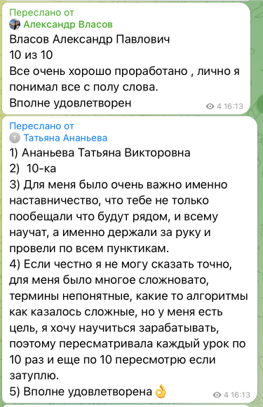 Кто следил за мной, знает о качестве моих образовательных продуктов и то какие результаты я даю